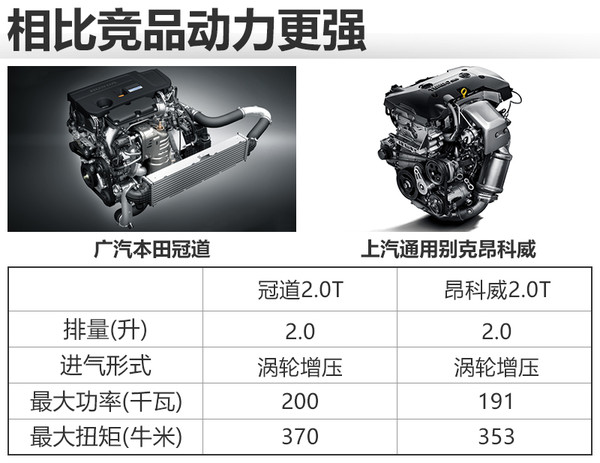 广汽本田冠道上市之后,将与上汽通用别克昂科威等同级别车型展开竞争。动力方面,冠道所搭载的2.0T发动机最大功率达到200千瓦,峰值扭矩370牛米。相比于昂科威的2.0T发动机,无论是最大功率,还是峰值扭矩,都具有显著优势。(图/文网通社于雷)