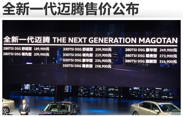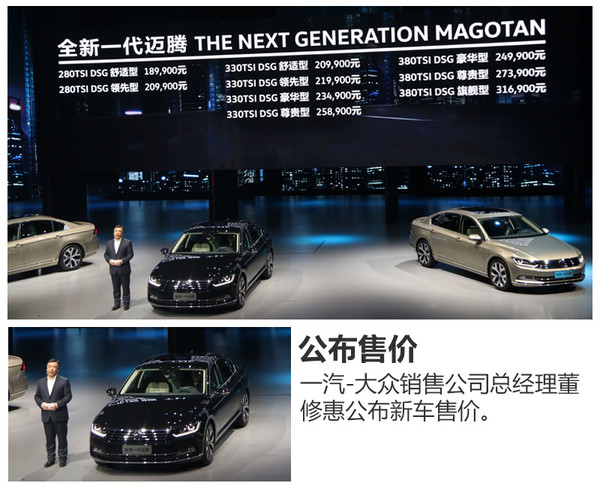 作为一汽-大众旗下的一款重磅车型,全新一代迈腾(B8)在外观方面延续了海外版车型的设计风格,并增加了膝部气囊、MKB多次碰撞预防系统、液晶仪表盘、第三代自动泊车系统等多种配置,此外,新车轴距相对现款车型也加长不少。今日(7月27日),全新一代迈腾在北京国际展览中心正式上市,网通社第一时间从现场发回报道,新车共推出9款车型,售价区间为18.99-31.69万元之间。