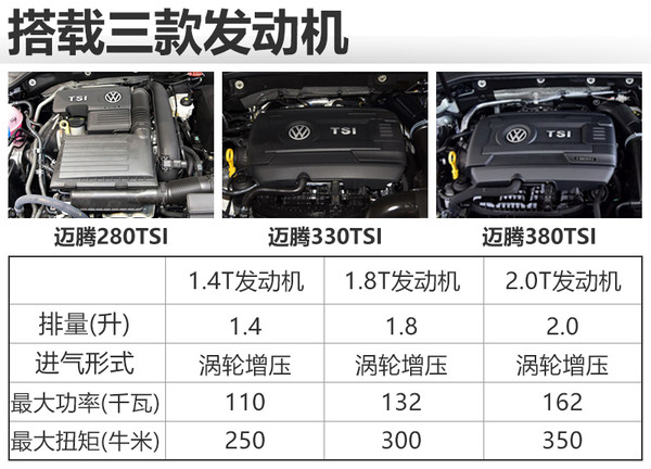 全新一代迈腾是基于大众集团的MQB平台开发,新车由一汽-大众长春工厂进行本土化生产,目前该工厂拥有20万辆的年生产能力。得益于全新平台应用的大量轻量化技术,新车在车身重量方面大幅降低。新车搭载了EA211以及第三代EA888涡轮增压系列两款发动机。