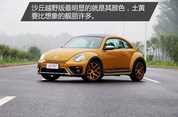 甲壳虫和MINI一样,都是主打文化的个性小车,不同版本各种选装配件都层出不穷,这不甲壳虫又推出了一款沙丘越野版,土黄的颜色可能让你会产生与“翔”的联想,但这只不过是照片的假象,实车更加明亮,在阳光下竟显得金灿灿。
