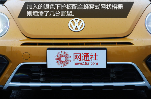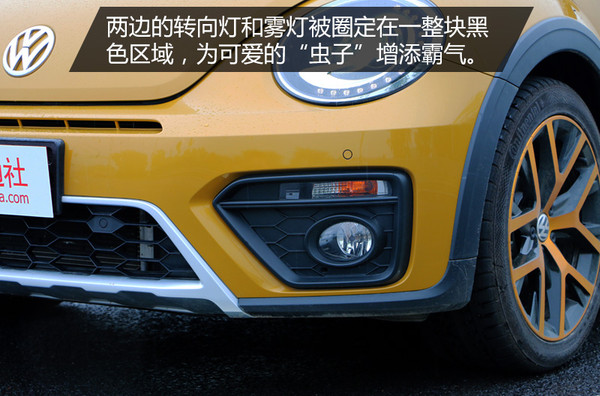 圆润的车头和类似保时捷的蛙眼大灯都是经典标志,而加入的银色下护板配合蜂窝式网状格栅则增添了几分野趣,两边的转向灯和雾灯被圈定在一整块黑色区域,为可爱的“小虫子”增添霸气,需要注意的是,雾灯还有随动转向的功能。