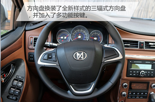 方向盘换装了全新样式的三辐式方向盘,并加入了多功能按键,此外新车方向盘还采用了镀铬饰件点缀,相比老款车型的四幅方向盘更为年轻化。