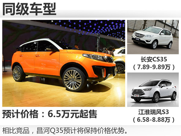 目前小型SUV领域基本划分为两个层级,入门级SUV产品有长安CS15、瑞风S2、北汽绅宝X25、昌河Q25等产品,更高级别的小型SUV有哈弗H2、长安CS35、中华V3、江淮瑞风S3以及昌河Q35等车型。从预计售价来看,昌河Q35将与江淮瑞风S3、长安CS35等产品指导价区间重合较大,入门级车型售价有望低于对手。(图/文网通社陈旭明)