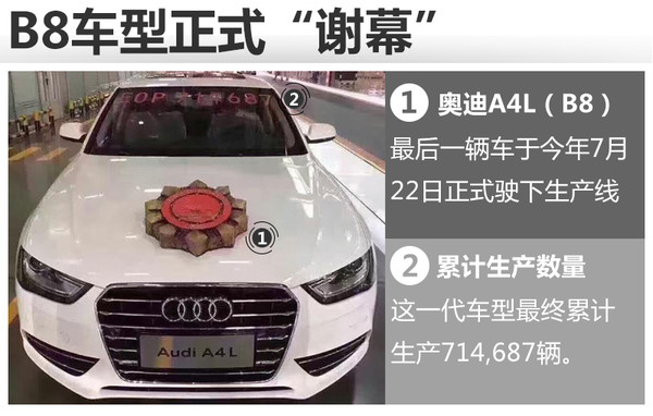 一汽-大众奥迪现款A4L(B8)于2008年11月正式上市,先期上市为2.0T车型,随后在2009年初推出了1.8T版本。今年7月22日,现款奥迪A4L(B8)最后一辆车驶下生产线,正式宣布停产,而这一代车型的最终累计生产数字锁定在714,687辆。