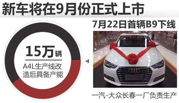 奥迪全新A4海外发布后,国产全新一代奥迪A4L的“一举一动”便成为了媒体与消费者关注的焦点。距离全新一代A4L正式亮相已经过去3个多月,网通社从吉林省发改委获悉,负责生产奥迪A4L的一汽-大众长春一厂在经过升级改造后,已经具备年产15万辆B9车型的能力,新车将会在下个月正式面向国内消费者。