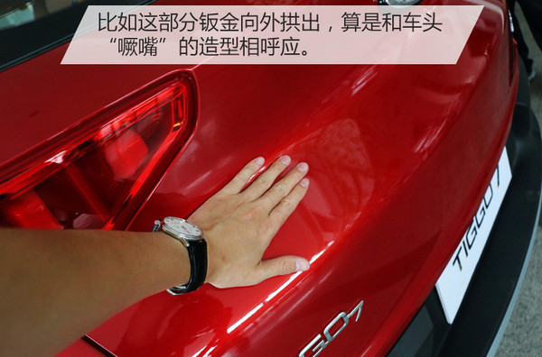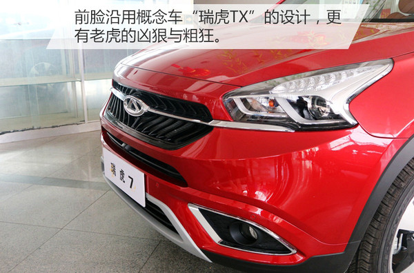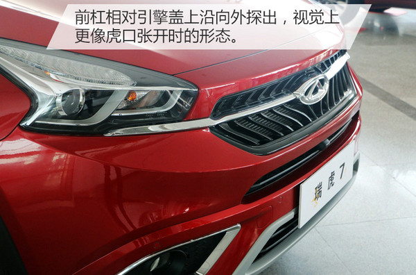 如果说瑞虎5瑞虎3给人的感觉虽然好看舒服,但略显中庸,那瑞虎7则挑战着人们对奇瑞“虎”字辈车款造型的认知。前脸基本沿用概念车“瑞虎TX”的设计,前杠相对引擎盖上沿向外探出,H.D.S水流车身造型设计理念也通过一些细节表达,中庸这个词儿不会在你脑海中出现,它充斥着个性,但又不会让人难以接受,力量与美感很好的进行了结合。