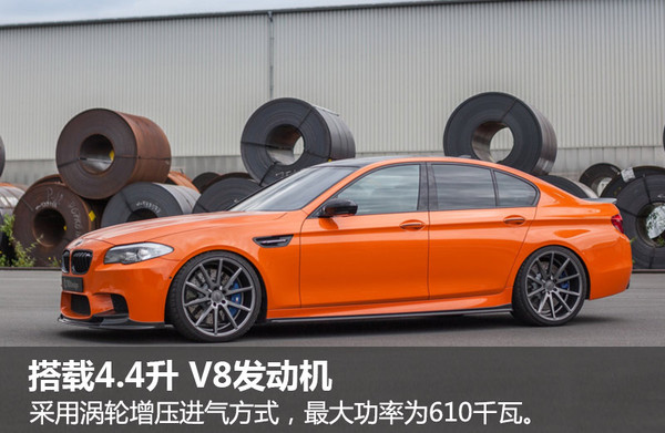 3D Design改装的宝马M5搭载的依旧是排量为4.4升的双涡轮增压V8发动机,但采用了不同的功率调校方式,其最大功率将达到610千瓦,最高时速将达到305公里。新车从静止加速至100公里/小时仅需3.4秒,而从静止加速至200公里/小时约需10秒。