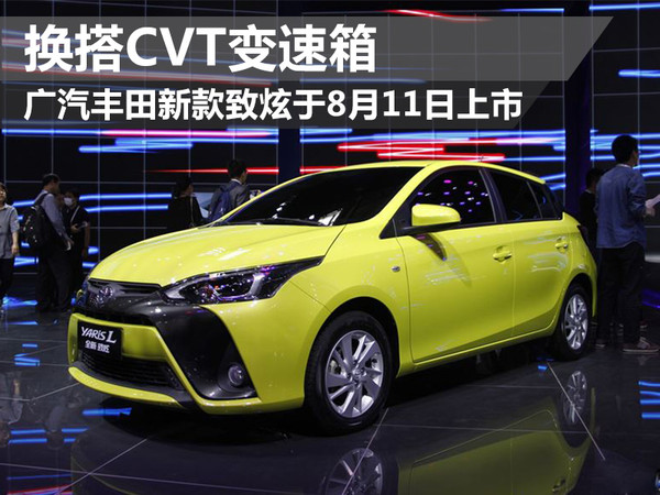 致炫是广汽丰田旗下一款小型轿车,现款车型搭载1.3升与1.5升两款自然吸气发动机匹配5速手动或4速自动变速箱。网通社从广汽丰田官方获悉,新款致炫车型将于8月11日正式上市。新车将沿用现款车型搭载的1.3升与1.5升自然吸气发动机,但在传动系统方面换搭了全新的CVT变速箱,同时外观方面也进行了调整。