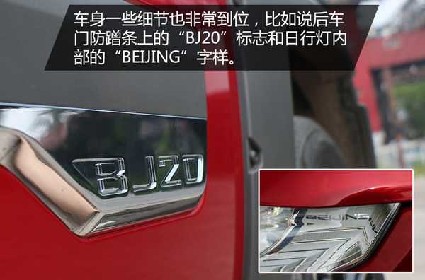 第一次见到实车,感觉似曾相识,这时我看到了远处的一辆BJ212才唤起了我内心中的回忆,的确,两辆车放在一起看北京(BJ)20真的有当年BJ212的影子,如果在当年以北京(BJ)20造型放在BJ212的身边这绝对是一款概念车。当然这次实拍的车辆并不是最终量产版本,量产版本会在细节上有些许不同,这次的实拍车也是未来的顶配版本。