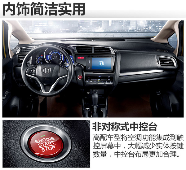 新款飞度使用非对称式中控台,偏向驾驶一侧的设计在操作过程中十分便捷。高配车型将空调的操作方式集成到一块独立的触控屏中,大幅缩减了实体按键的数量,在视觉效果上更加简洁。此外,新增加的1.5L CVT LXS舒适天窗版在现款LX舒适版CVT车型的基础上不仅增加了防夹天窗,还增加了倒车雷达,实用性得到了提升。