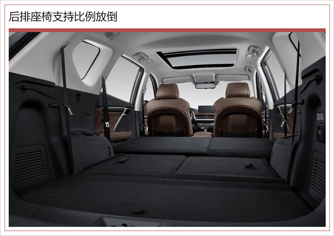 SEEK 5定位中型SUV,其车身尺寸长宽高分别为4771*1859*1735毫米,轴距达到2800毫米;同时这款SUV座椅采用2+3+2布局,第二、三排座椅支持比例放倒,有效提升装载空间。