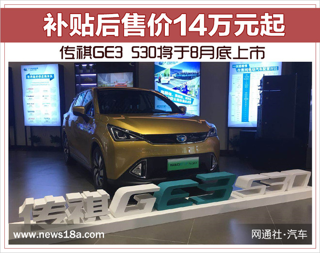 广汽新能源传祺GE3是一款纯电动小型SUV,目前在售车型包含智享版和尊享版。网通社从广汽新能源官方获悉,传祺GE3 530正式公布预售价,补贴后售价14万元起,并将于8月底上市。动力方面,GE3 530将对电池进行升级,其NEDC综合工况续航里程达410公里。