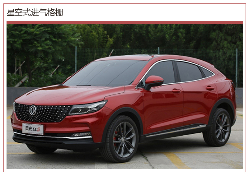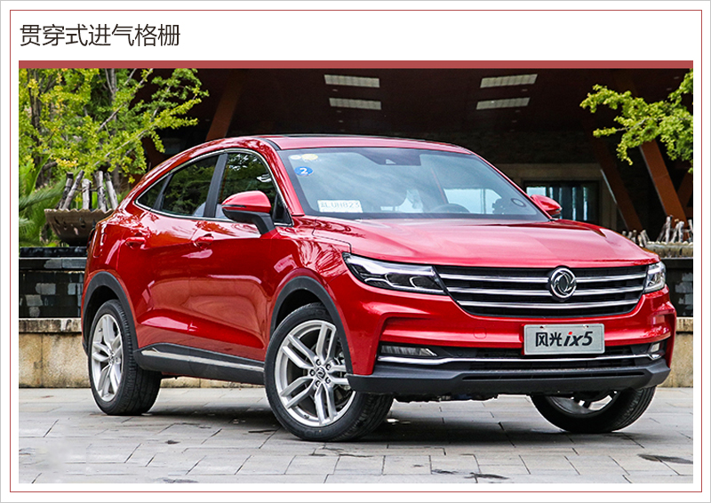 风光ix5前脸采用贯穿式进气格栅配以两侧熏黑式LED光源大灯,整体富有气势。新车前保险杠棱角分明,两侧带有类似进气口造型设计同时底部加入镀铬饰条点缀,十分运动。此外,新车还将提供时尚流行的星空式格栅和简约大方的贯穿式格栅选择。